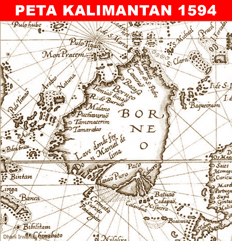 Tahun 1594 gambar peta kalimantan lebih besar dari sebelumnya. Bentuknya lebih menggelembung, dan bagian kanan atas belum ada ciri khas seperti mulut binatang.