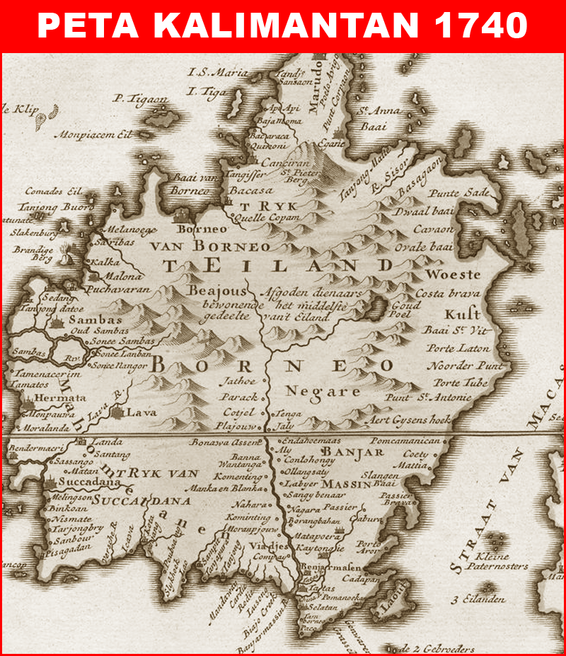 Tahun 1740 peta Kalimantan berubah kembali cenderung miring ke kanan, dan dari segala sisi tampak terdapat teluk.