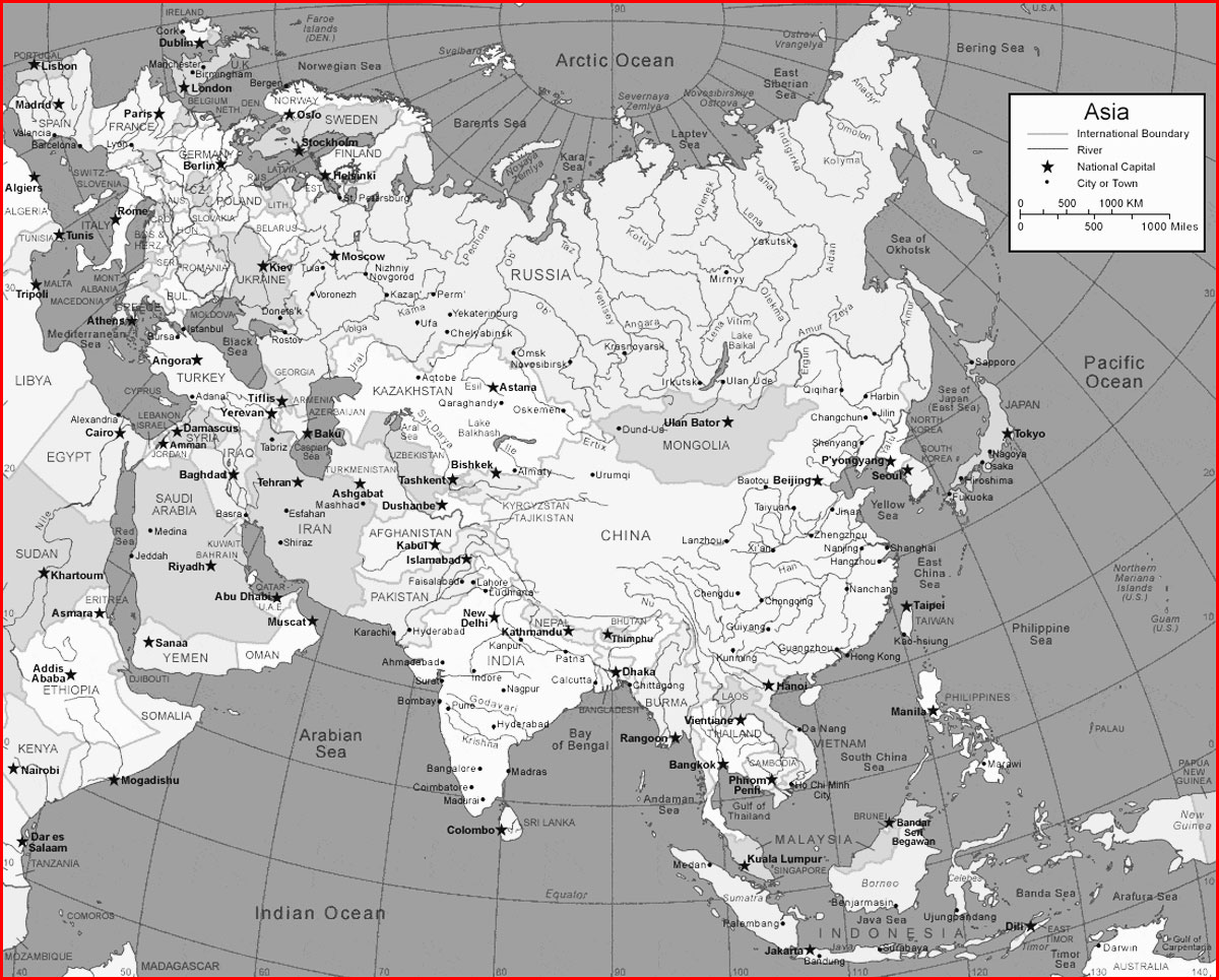 Asia Map Without Names Black and White