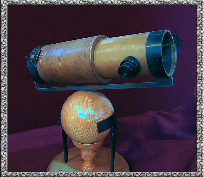 | Replika teleskop refleksi kedua Newton yang ia presentasikan ke Royal Society pada tahun 1672 |