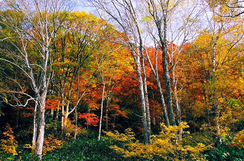 Di atas dan di sebelah utara daerah hutan tropis ini terdapat hutan campuran dengan pohon-pohon berdaun lebar dan berganti daun, yang terdiri dari berbagai spesies pohon cemara, maple (Acer sp), birch (Betula sp), beech (Fagus sp), poplar (Populus sp), dan ek. Daerah hutan campuran ini terbentang melintasi Honshu utara, Hokkaido barat daya, dan pegunungan di Jepang tengah.