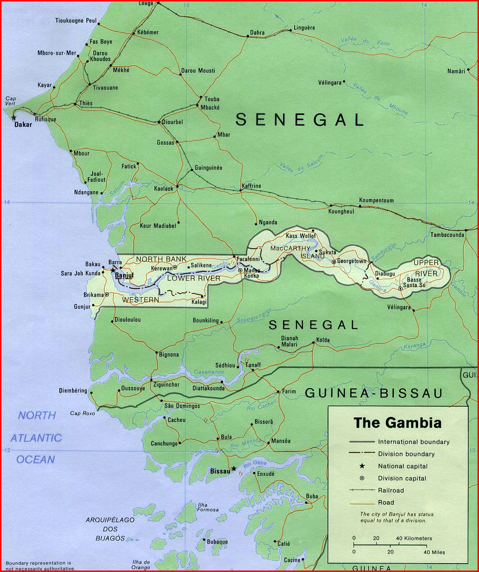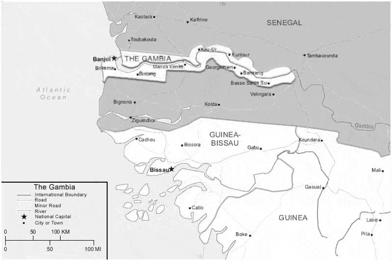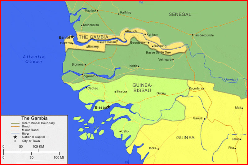 Important city of Gambia: Banjul, Bansang, Basse Santa Su, Bintang, Brikama, Georgetown, Kau-Ur, Konko, Kuntaur and Mansa Konko.