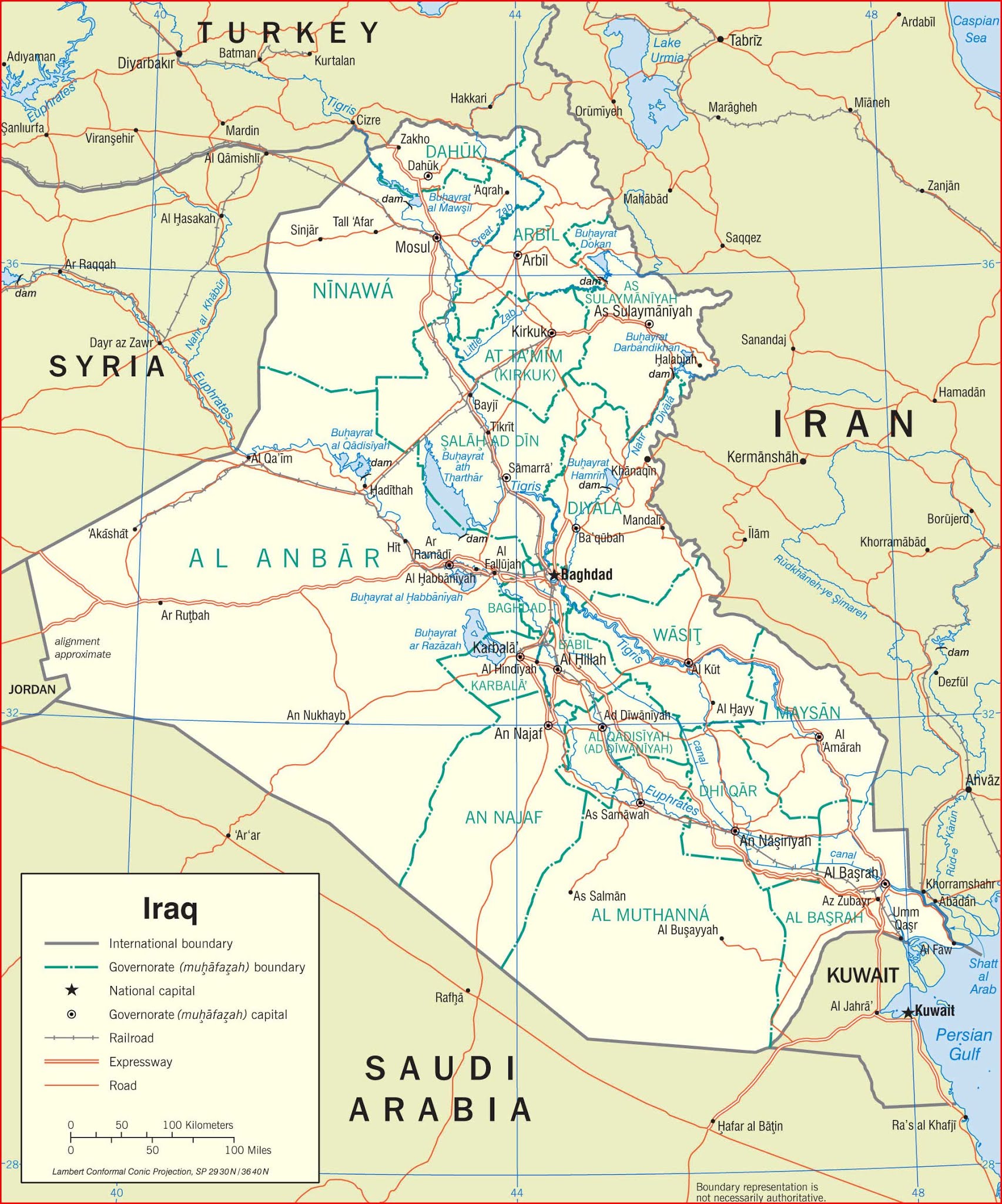Important city of Iraq: Ad Diwaniyah, Al Amarah, Al ‘Ammariyah, Al Basrah (Basra), Al Fallujah, Al Hayy, Al Hillah, Al Kazimiyah, Al Khalis, Al Kumayt, Al Kut, Al Mawsil (Mosul), Al Miqdadiyah, Al Musayyib, Al Qurnah, Al Quwayr, Al ‘Uzayr, Ali al Gharbi, An Najaf, An Nasiriyah, Anah, Ar Ramadi, Ar Rifa’i, Ar Rutbah, Arbil, As Samawah, As Sulaymaniyah, Ash Shatrah, Az Zubayr, Baghdad, Balad, Ba’qubah, Chamchamal, Dahuk, Daquq, Halabjah, Hit, Karbala’, Karkuk (Kirkuk), Khanaqin, Khurmal, Kifri, Mandali, Qarah, Qawam Al Hamzah, Suq Ash Shuyukh, Tall ‘Afar, Tikrit, Tuz Khurmatu and Zakho.