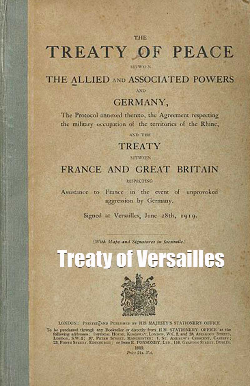 Perang Dunia I berakhir, pada tanggal 20 Juni 1919 di Istana Versailles ditandatangani perjanjian damai antara Jerman dan Empat Besar (Amerika, Inggris, Prancis, Italia) yang mewakili 31 negara bekas lawan Jerman.