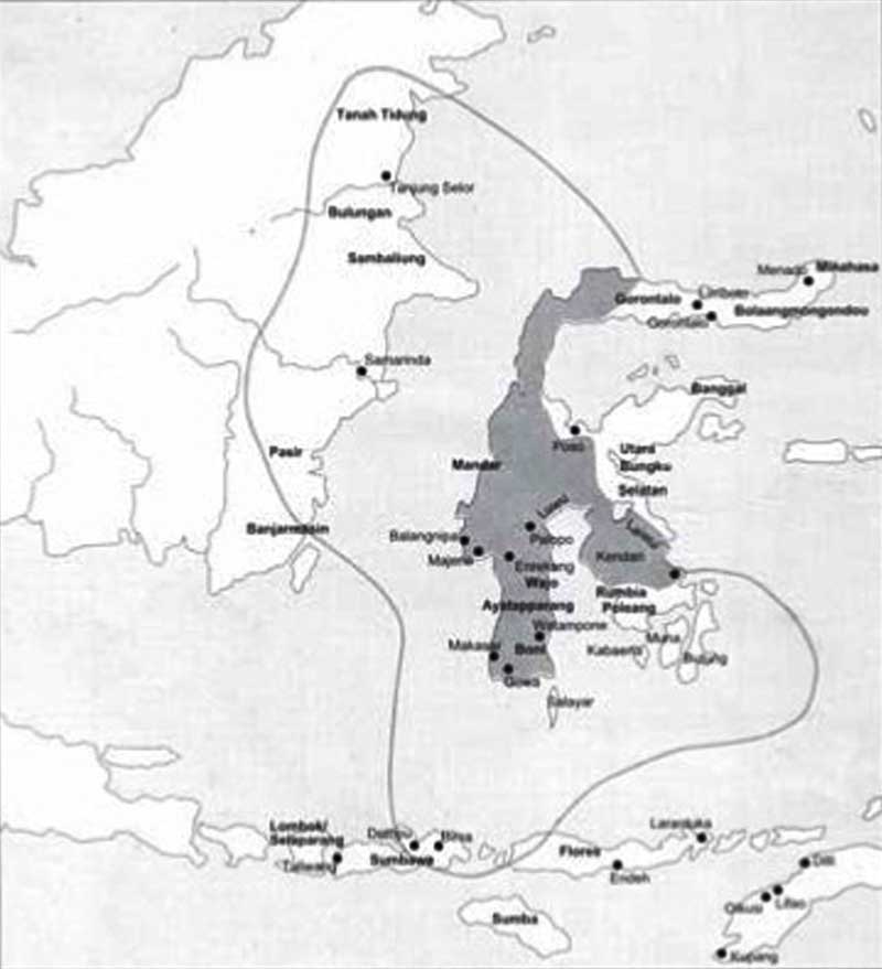 | Wilayah kekuasaan Federasi Kesultanan Gowa-Tallo pada abad ke-16 |
