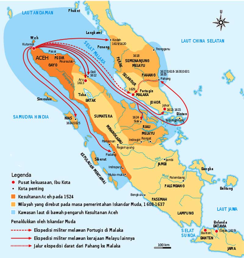 Di bawah pemerintahan Sultan Iskandar Muda, kerajaan Aceh mencapai puncak kejayaannya. Kerajaan Aceh tumbuh menjadi kerajaan besar dan berkuasa atas perdagangan Islam di Selat Malaka, bahkan menjadi bandar transito yang menghubungkan dengan pedagang Islam di dunia barat. Iskandar Muda beberapa kali melakukan penyerangan terhadap Portugis dan Kerajaan Johor di Semenanjung Malaka. Aceh juga menduduki daerah-daerah seperti Aru, Pahang, Kedah, Perlak dan Indragiri, sehingga wilayah Aceh sangat luas.