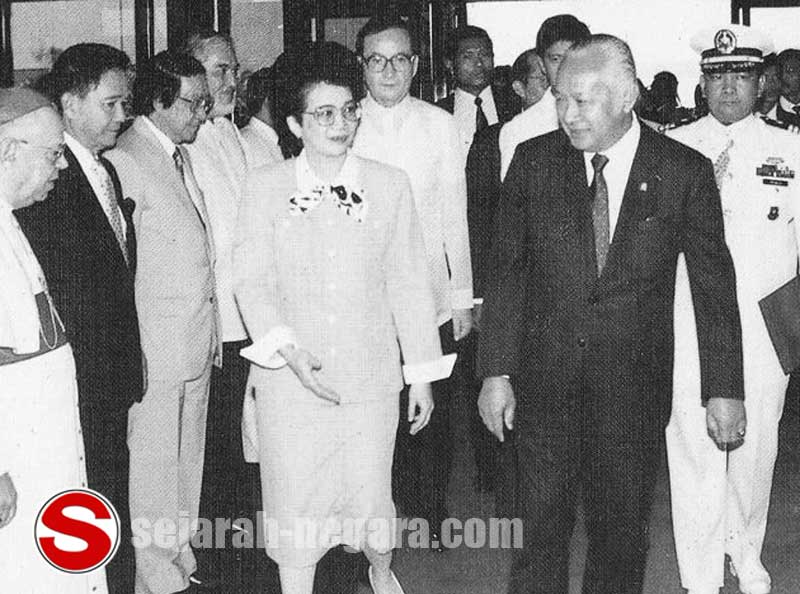 | Presiden Suharto dengan Corry Aquino ketika akan menghadiri KTT Asean di Manila 1987 |