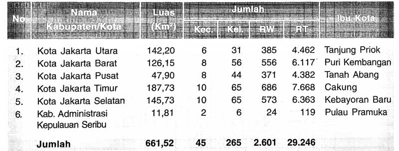 Gambar Tabel Pembagian wilayah Provinsi DKI Jakarta