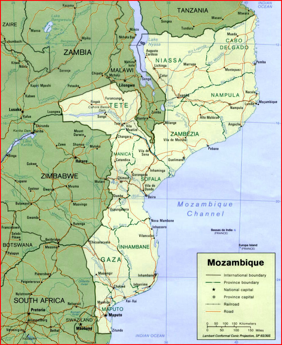 Mozambique Bordering Countries: Malawi, South Africa, eSwatini (formerly Swaziland), Tanzania, Zambia, Zimbabwe