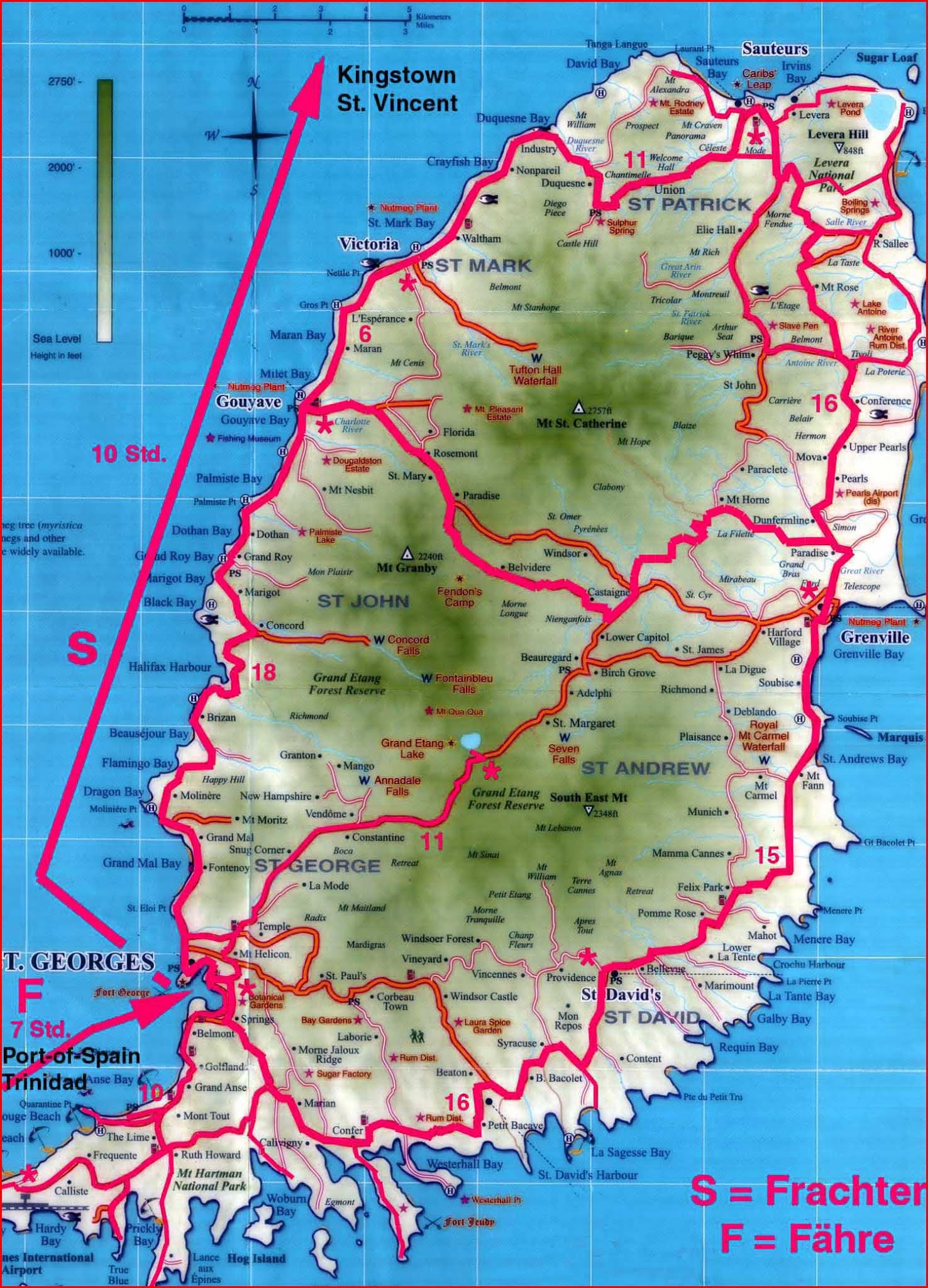 Hal-hal yang Perlu diketahuiKota penting Grenada: St. George’s, Belmont, Calivigny, St. David’s, Marquis, Grenville, Tivoli, Sauteurs, Victoria, Gouyave, Grand Roy, Grand Bay, Hillsborough.