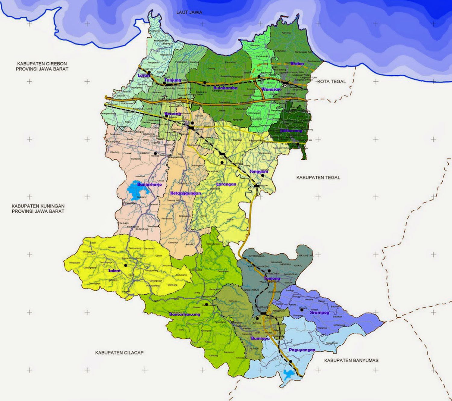Seperti telah kita ketahui bahwa Kabupaten Brebes adalah salah satu dari 35 kabupaten di Jateng. Hal ini bisa anda lihat di Peta Jawa Tengah. Letaknya di jalur pantura (pantai utara) pulau Jawa. Kabupaten ini juga merupakan salah satu jalur mudik lebaran setiap tahunnya. Kabupaten Brebes, membawahi atas 17 Kecamatan dan 297 Kelurahan/Desa, dengan ibu kota Brebes.