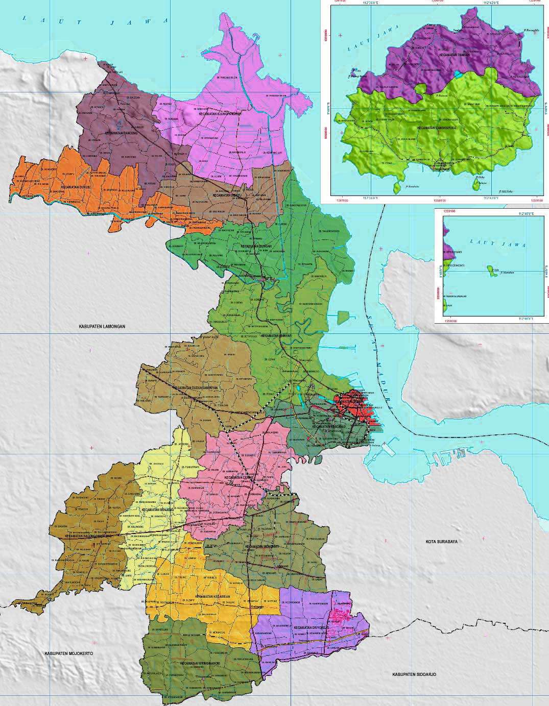Di bawah ini adalah Peta Kecamatan Kabupaten Gresik. Dengan peta ini anda dapat mengetahui nama-nama kecamatan yang masuk dalam wilayah kabupaten ini beserta batas-batasnya.