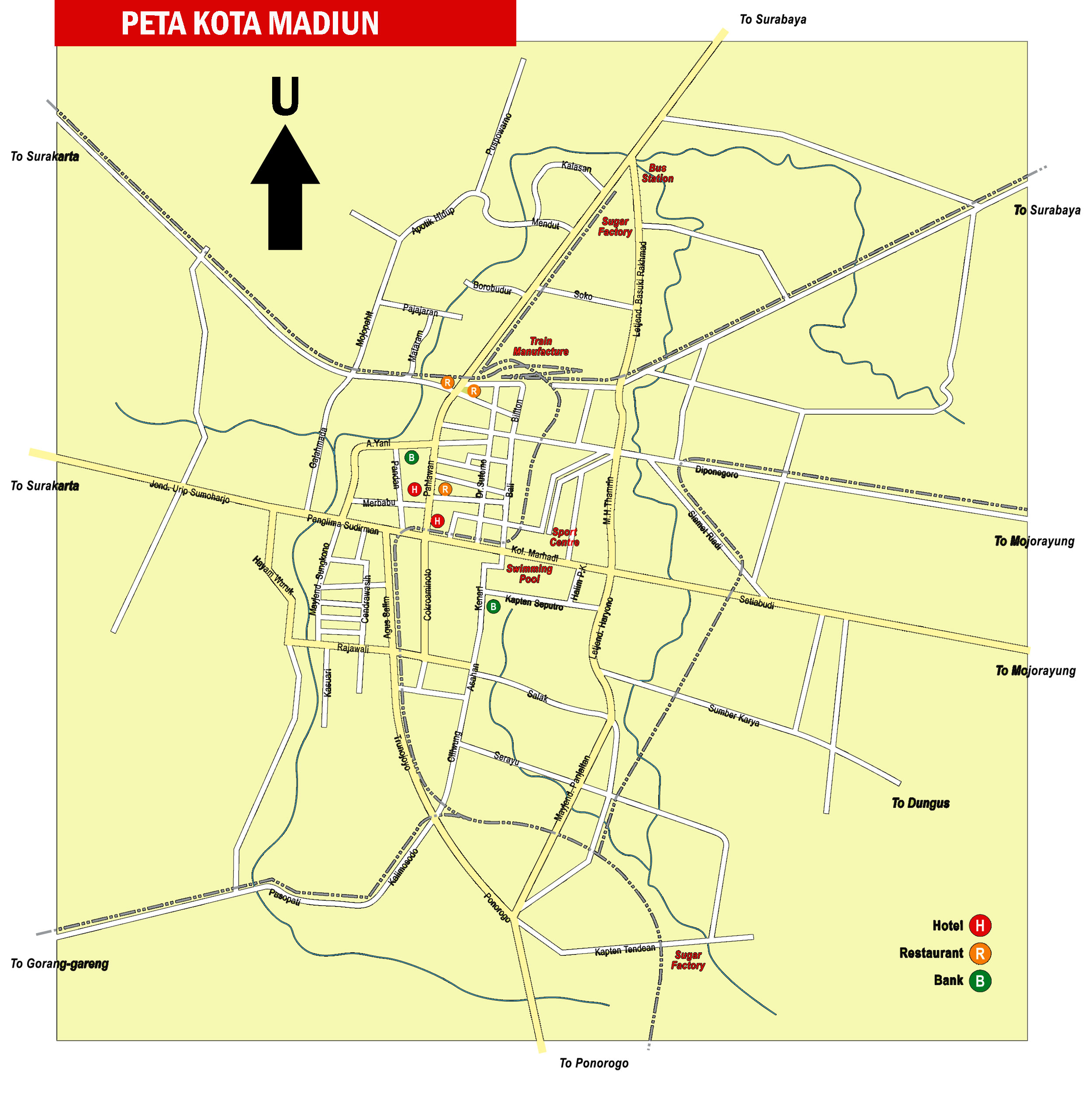 Dengan memperhatikan peta Madiun di bawah ini, kami berharap anda akan lebih mudah untuk menjelajah kota tanpa tersesat.