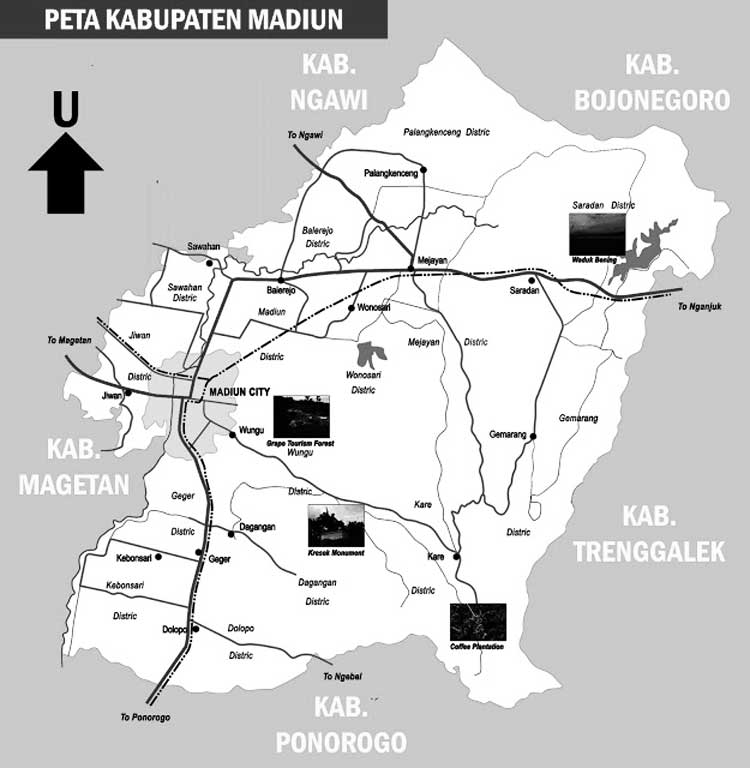 Di bawah ini adalah peta infrastruktur Kabupaten Madiun.