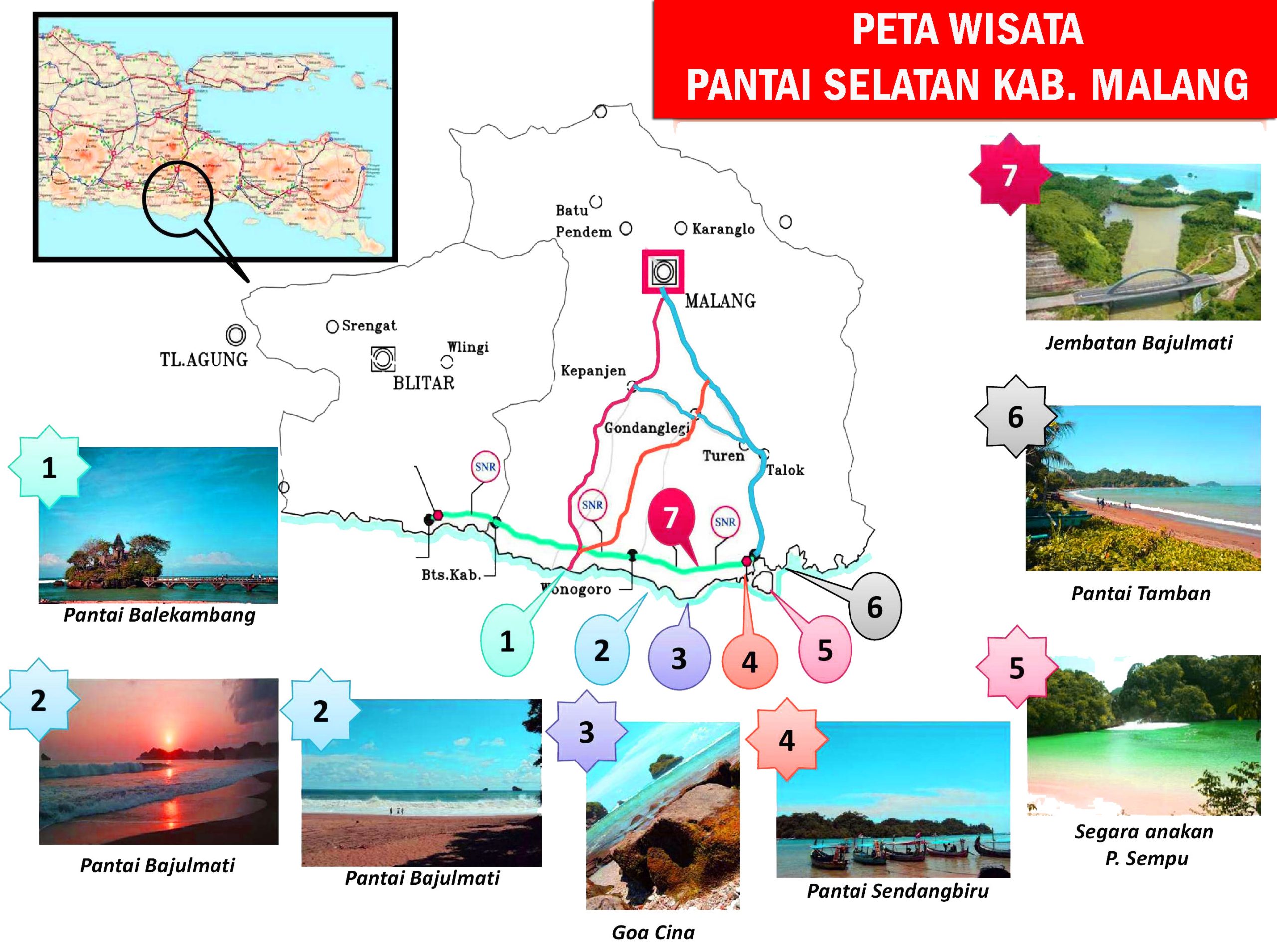 Gambar Peta Wisata Pantai Selatan Malang, Jawa Timur