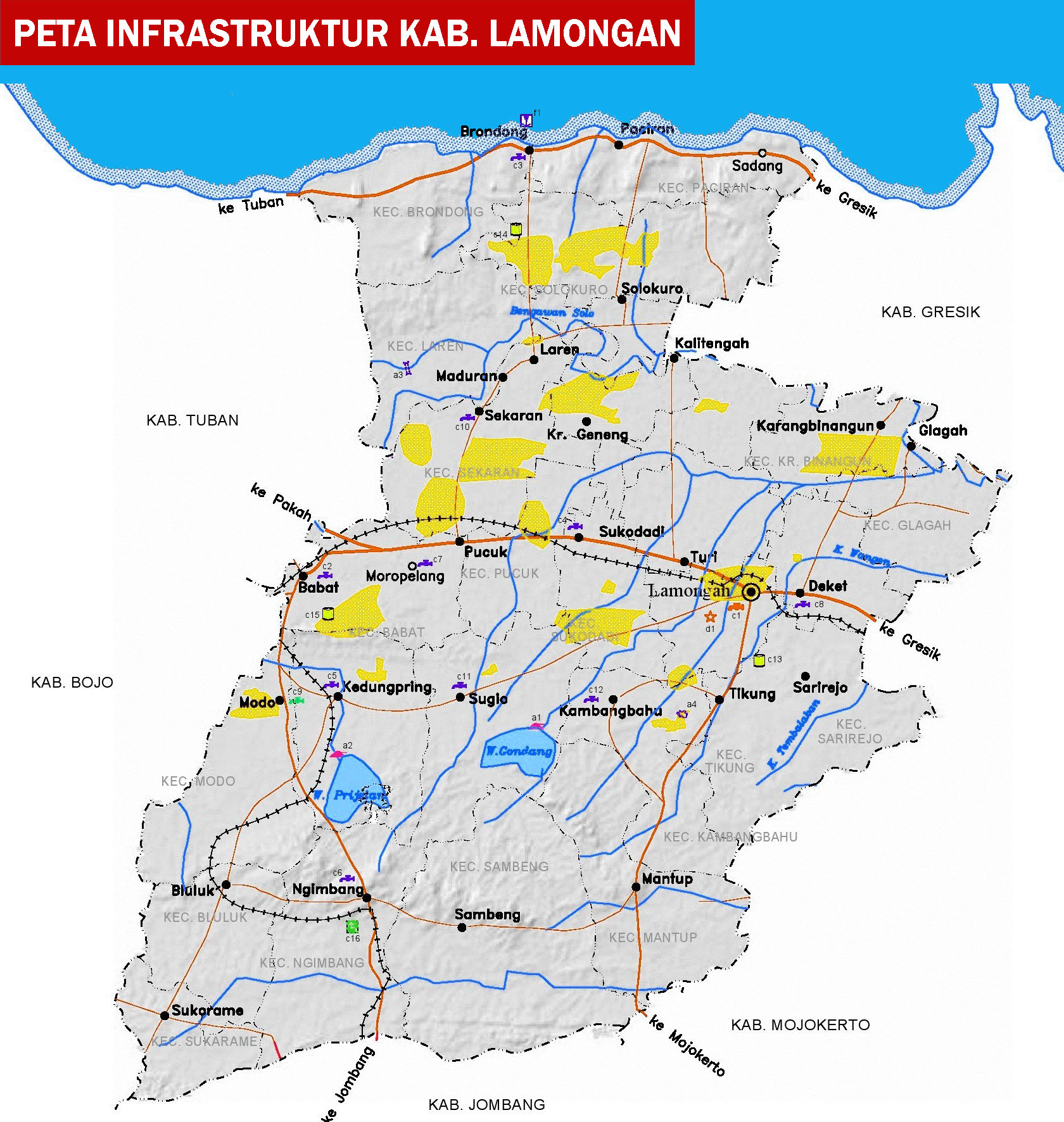 Di bawah ini adalah Peta infrastruktur Kabupaten Lamongan.