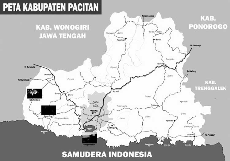 Perhatikan peta Kabupaten Pacitan di bawah ini: