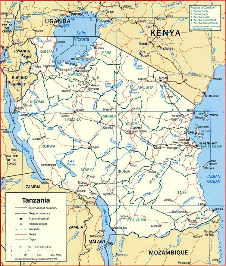 Peta Tanzania di bawah ini meliputi peta wilayah, peta politik, dan peta letak jika dilihat dari peta dunia secara keseluruhan.