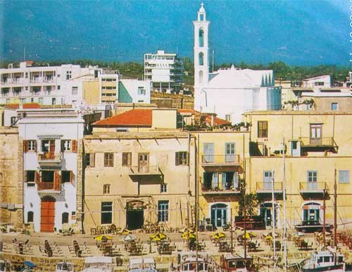 Pemandangan salah satu sudut kota Kyrenia, kota pelabuhan di pantai utara Cyprus.