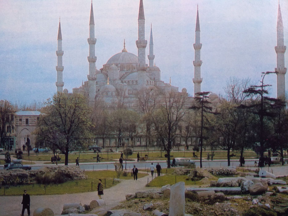 | Masjid Biru di Instanbul dibangun pada masa pemerintahan Sultan Ahmed I (1603 – 1617) mempunyai tujuh menara. |