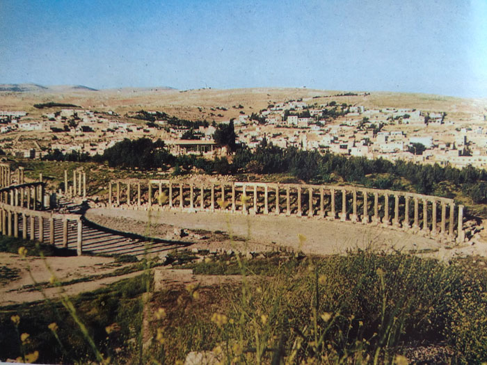 Reruntuhan forum (panggung) kuno di Yordania yang dibuat pada zaman Kekaisaran Romawi tahun 64 sebelum Masehi, terletak di kota Jarash tepi Sungai Yordan.