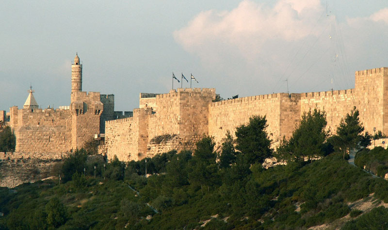 Kitab Injil juga menggambarkan bahwa kota tersebut sebagai kota tangguh yang memiliki tembok kota yang kuat. Yerusalem dibangun oleh Raja Dawud, yang lebih dikenal sebagai Ir David, atau Kota Daud. Di bangun di sebelah tenggara tembok Kota Lama, diluar dari kawasan Gerbang Dung.
