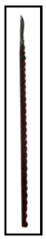Senjata ini terbuat dari kayu hitam. Bentuk senjata ini memiliki ukuran kayu runcingnya ± 25 cm dan kayu pangkalnya + 20 cm.