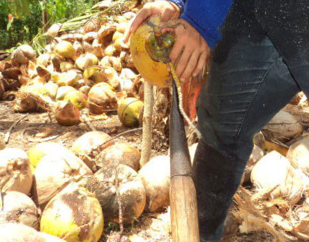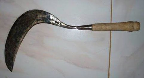 Senjata ini berbentuk sebilah pisau runcing yang ditancapkan ke dalam tanah. Bagian mata yang runcing dipakai para petani untuk mengupas kulit kelapa. Pemakaian alat ini memungkinkan pekerjaan mengupas kelapa menjadi lebih cepat selesai.