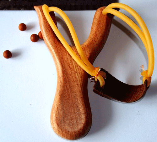 Dalam bahasa Indonesia senjata tradisional ini diberi nama ketapel. Senjata ini terbuat dari kayu, selembar kulit hewan, dan 2 buah karet untuk menciptakan gaya pegas yang kuat. Peluru yang sering digunakan berupa batu kecil-kecil atau kerikil.