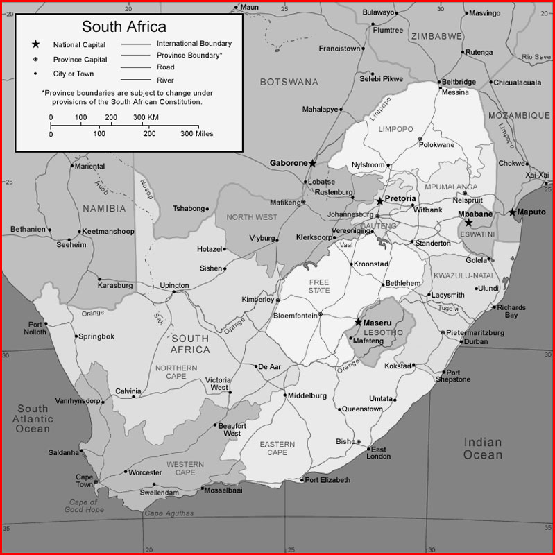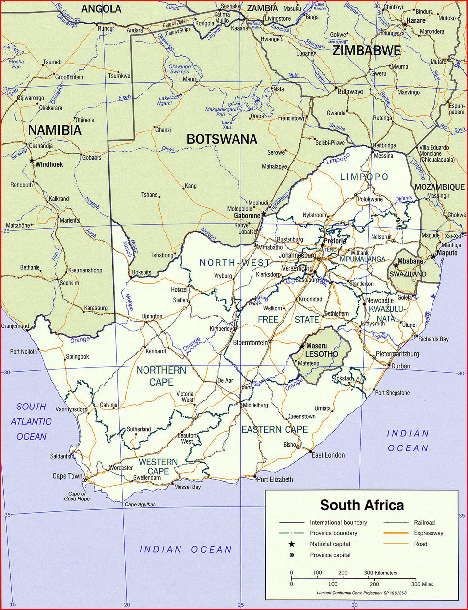 Important city of South Africa: Alexandria, Beaufort West, Bisho, Bloemfontein, Calvina, Cape Town, De Aar, Dundee, Durban, East London, Golela, Hotazel, Johannesburg, Kimberley, Klerksdorp, Knysna, Kroonstad, Ladysmith, Lephalale (Ellisras), Lichtenburg, Mafikeng, Middelburg, Mokopane (Portgietersrus), Mosselbaai, Musina (Messina), Nelspruit, Nylstroom, Pietermaritzburg, Polokwane (Pietersburg), Port Elizabeth, Port Nolloth, Port Shepstone, Pretoria, Queenstown, Richards Bay, Rustenburg, Saldanha, Sishen, Springbok, Standerton, Stanger, Swellendam, Ulundi, Umtata, Upington, Vanrhynsdorp, Vereeniging, Vryburg, Witbank and Worcester.