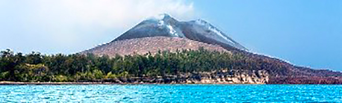 Gunung Krakatau dahulu kala pernah meletus pada tahun 1883, sekarang sudah menjadi tempat wisata yang terkenal.