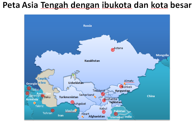 Slide 2, Peta Asia Tengah dengan ibukota dan kota besar