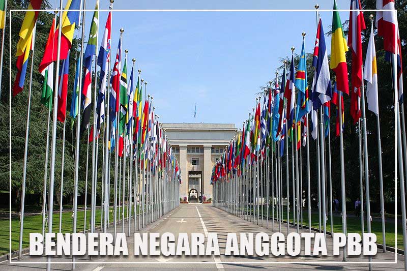 Bendera-bendera dari negara-negara anggota PBB, di depan Istana Bangsa-Bangsa (Jenewa, Swiss). Sejak 2015, bendera dari dua negara pengamat non-anggota PBB dikibarkan bersama bendera-bendera dari 193 negara anggota.