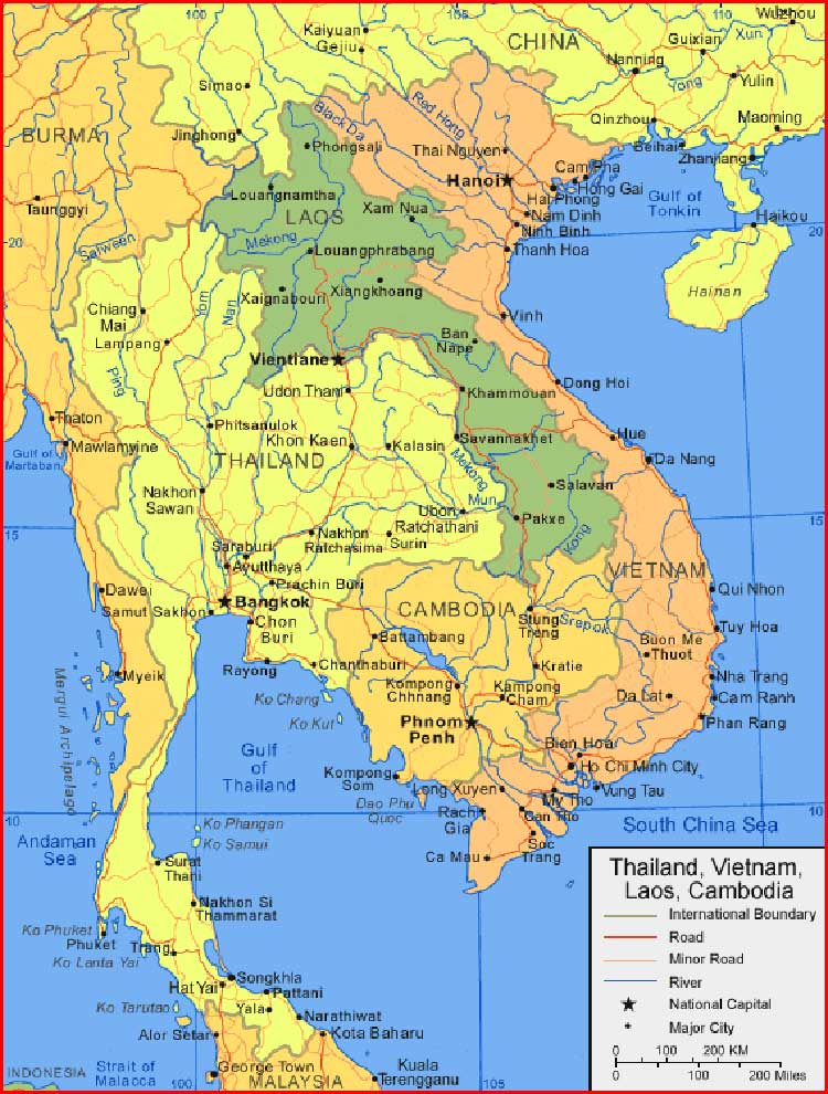 Vietnam Bordering Countries: Cambodia, China, Laos